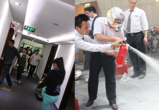 培訓內容主要有如何排查容易引發火災的消防安全隱患、高樓發生火災自救、辦公電器設施設備正確使用、火情緊急情況處置、鑒別滅火器是否有效和正確使用方法、防煙面具的使用方法、火災應急疏散常識等,并組織了疏散演練。