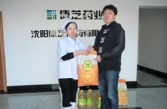 在接到總部工會的工作部署后,沈陽康芝工會立即開展工作,在充分調研、個人申請、層層推薦的基礎上,通過民主評議的方式,最終確定春節送溫暖的范圍和名單,在公示的基礎上,將白緒林、曹成義、崔萬富、張守峰、冀青輝、孫銘、姚麗紅等七人作為此次送溫暖活動的對象,在春節前夕將米、面、油等慰問品送到每個人手中。