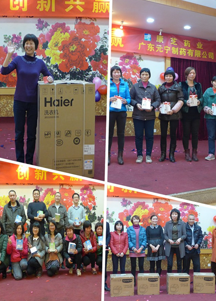 2月13日下午,廣東元寧制藥有限公司2014年度總結(jié)表彰大會暨2015年新春年會在碧翠湖酒家隆重舉行。年會以“攜手元寧、迎新共贏”為主題,分為總結(jié)表彰大會和聯(lián)歡會兩個環(huán)節(jié)。康芝藥業(yè)副董事長兼元寧制藥法人代表洪江濤先生、元寧制藥總經(jīng)理徐建紅女士、元寧制藥廠長高宏生先生和元寧60多名員工歡聚一堂,辭舊迎新。