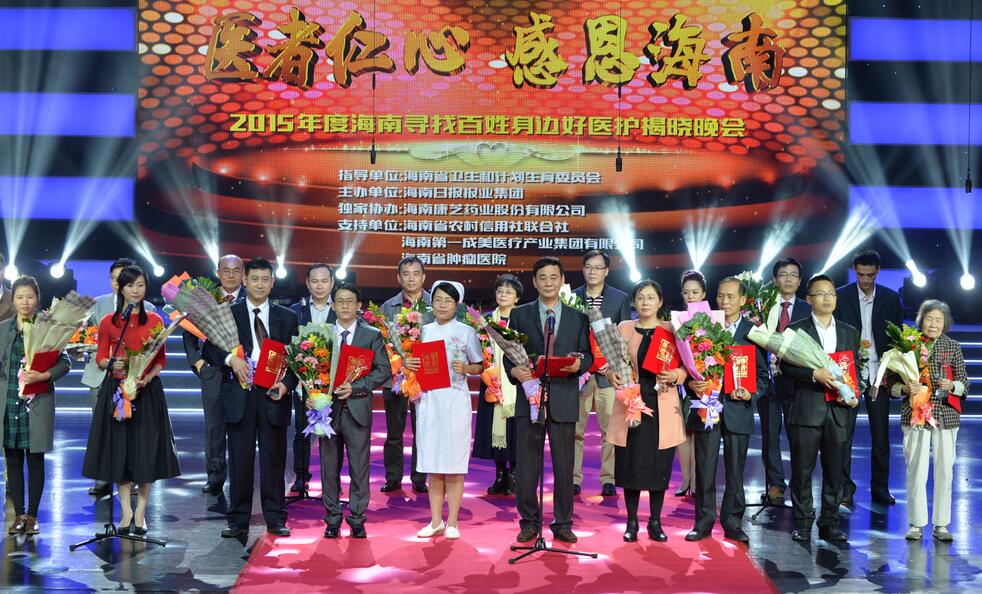 1月13日,海口。忽如其來的冷空氣和降雨依然抵不住人們的熱情。當(dāng)晚,由康芝藥業(yè)獨家協(xié)辦的“醫(yī)者仁心,感恩海南——2015年度海南尋找百姓身邊好醫(yī)護”大型公益晚會在海南省歌舞劇院舉行。20位“好醫(yī)護”代表,海南省委常委、宣傳部長許俊,海南省政協(xié)副主席王應(yīng)際,海南省衛(wèi)計委主任韓英偉等領(lǐng)導(dǎo),以及康芝藥業(yè)董事長洪江游共同出席晚會。上千名觀眾前來觀看,現(xiàn)場座無虛席。