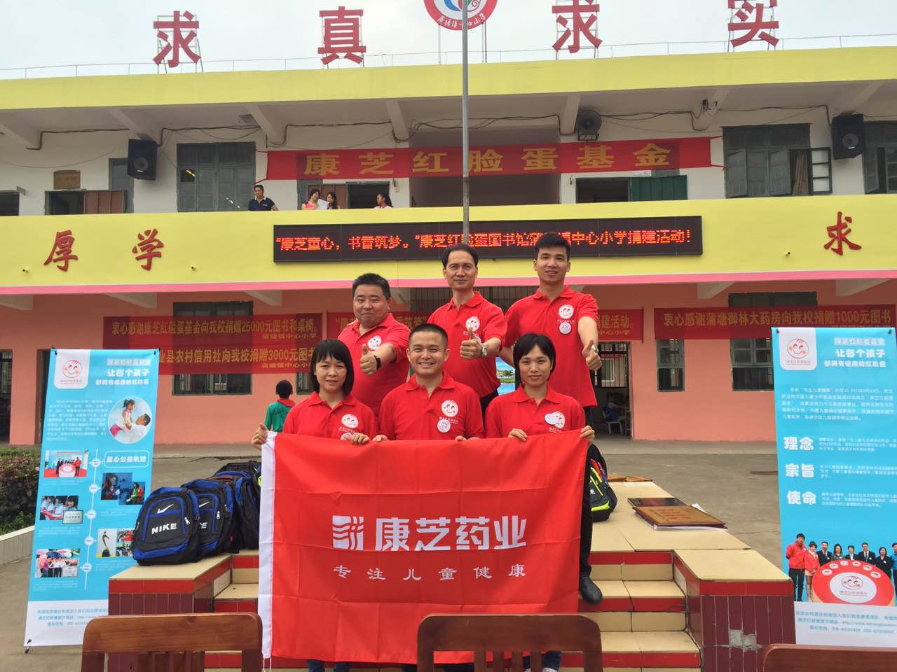此次,康芝紅臉蛋基金為蒲塘鎮中心小學捐贈了一批圖書,并設立了紅臉蛋圖書館。興業縣農村信用社及御林堂大藥房也分別捐贈了部分圖書,康芝藥業合作伙伴劉肖肖還為學校的孩子們提供了愛心大藥箱。
