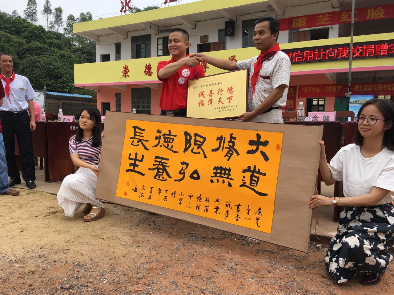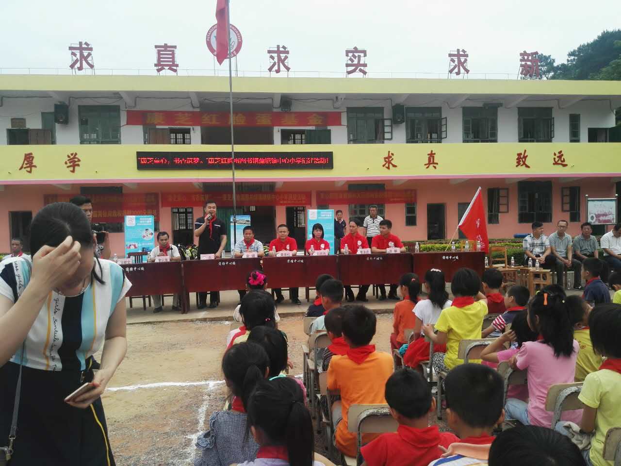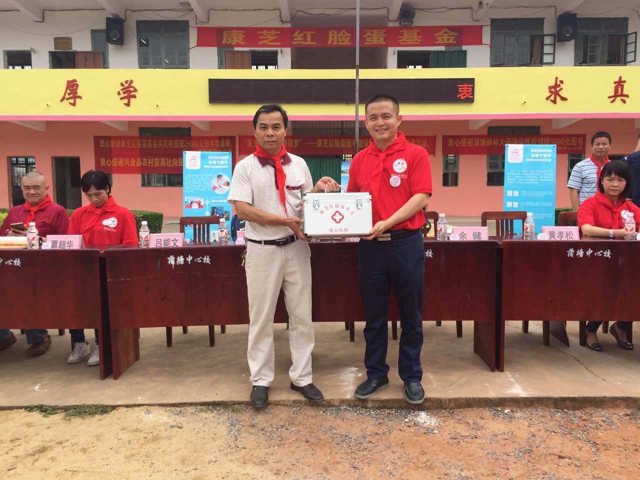 廣西玉林興業縣教育局鄧廣芳局長,玉林蒲塘鎮文東黨委書記、余健鎮長等領導,興業縣農村信用合作社代表龐一秋、蒲塘鎮御林堂大藥房廖永林等愛心人士,和蒲塘鎮中心小學校長謝宗海等也出席了捐贈儀式。