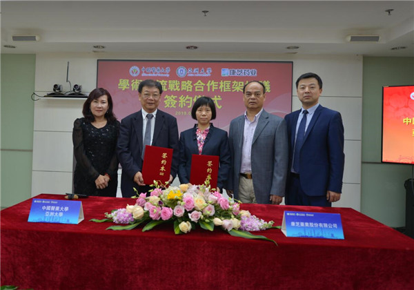 其后,康芝藥業副董事長兼副總裁洪麗萍女士與臺灣亞洲大學校友總會秘書長蔡少洲先生簽署學術交流戰略合作框架協議,正式達成戰略合作關系。