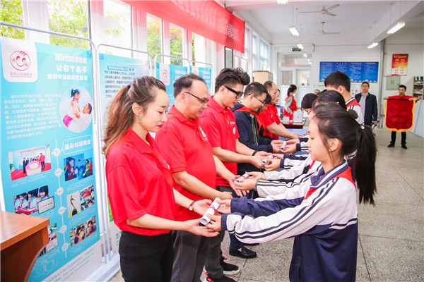 隨后,康芝藥業成都合作伙伴、人人康健品牌管理有限公司總經理李敏將配備了學生常用藥品和急救用品的愛心藥箱送到幸貴明校長手中。此次活動,四川區域合作伙伴還為孩子們帶去了一批愛心物資,此外,與康芝合作多年的診所給孩子們捐贈了多個籃球及多副羽毛球拍,以更好豐富孩子們的課余生活。