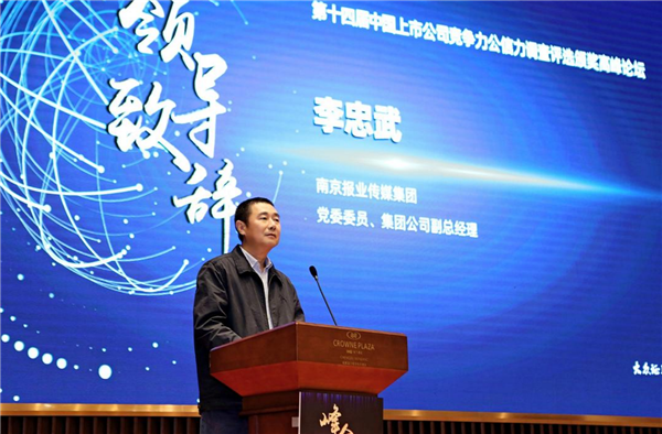 會上,南京報業傳媒集團黨委委員、集團公司副總經理李忠武在致辭中表示,目前滬深上市公司已超過3600家,擁有1.55億投資者,上市公司已經成為中國經濟發展當仁不讓的中流砥柱。