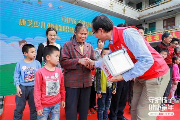 2019年,康芝藥業(yè)積極響應(yīng)國(guó)家脫貧攻堅(jiān)及健康中國(guó)的號(hào)召,聯(lián)合大翔藥業(yè)等知名藥企,發(fā)揮藥企本身能量,通過(guò)康芝紅臉蛋基金為廣大少年兒童和家長(zhǎng)普及兒童健康知識(shí),開授“少兒健康常識(shí)和急救知識(shí)公益課堂”,并為孩子們和家庭配備一個(gè)少兒健康愛(ài)心藥箱,為孩子的健康成長(zhǎng)保駕護(hù)航。