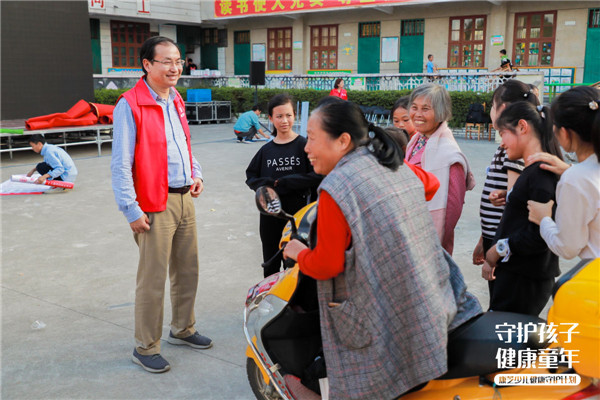 △康芝藥業(yè)首席科學(xué)官辜列在活動(dòng)后訪問(wèn)該校學(xué)生家長(zhǎng)
