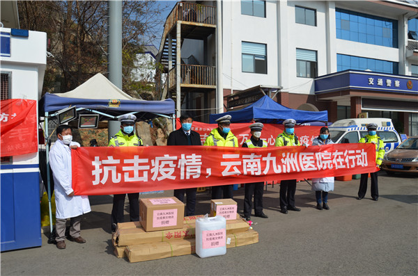 “面對疫情,全體公安交警不退縮,為守護人民群眾的平安健康,做出了巨大貢獻。在這次疫情阻擊戰中,全市醫護工作者和公安交警成為共同作戰的戰友,沖在疫情一線,成為突擊隊員,與疫情賽跑,為生命站崗,共同筑起了聯防聯控、群防群控的‘銅墻鐵壁’。相信這場戰疫的勝利終將屬于我們!”云南九洲醫院醫務科主任賀希獻說這話時,言語中流露著真情。