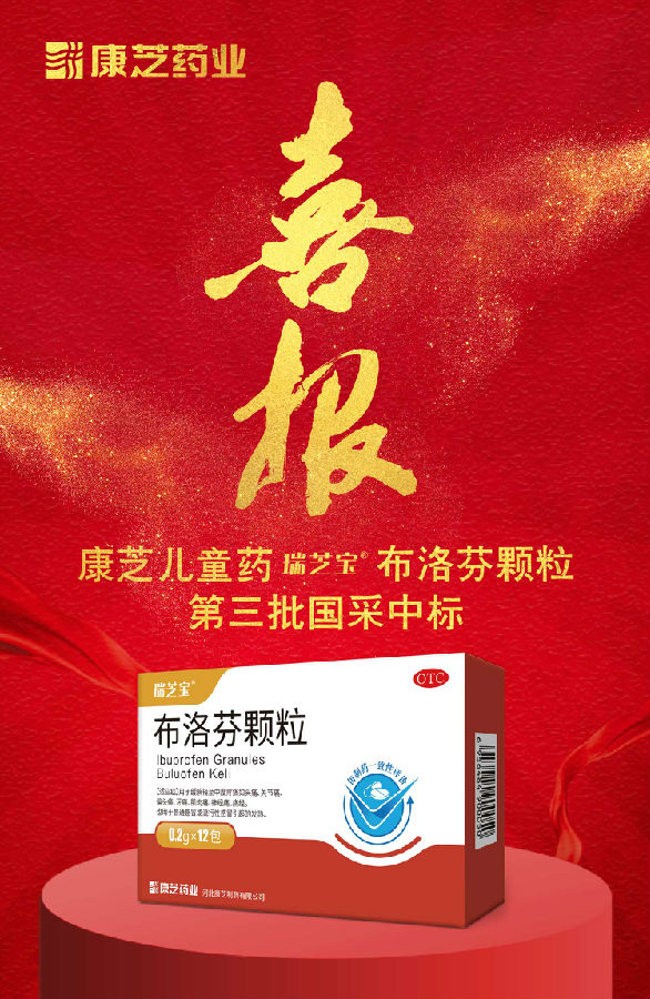8月20日,第三批全國藥品集中采購中選結果發布,康芝藥業全資子公司河北康芝制藥有限公司生產的兒童藥瑞芝寶?布洛芬顆粒成功中標!