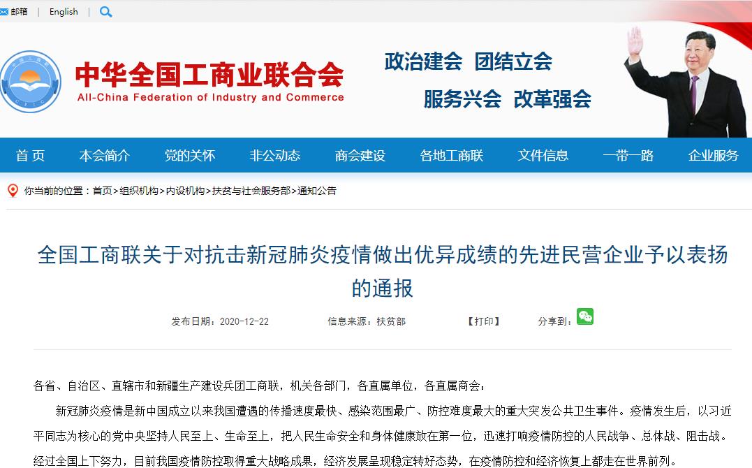 會(huì)上,全國(guó)工商聯(lián)對(duì)康芝藥業(yè)股份有限公司等一批新冠疫情期間充分發(fā)揮自身優(yōu)勢(shì),積極履行社會(huì)責(zé)任的民企給予高度表?yè)P(yáng),并授予“抗擊新冠肺炎疫情先進(jìn)民營(yíng)企業(yè)”榮譽(yù)稱(chēng)號(hào)。