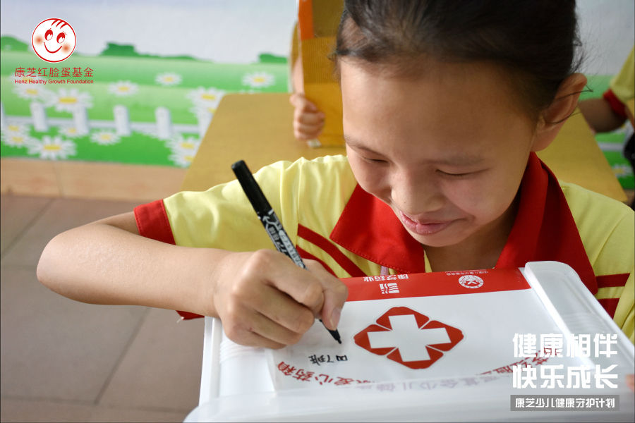 除了來自干貨滿滿的紅臉蛋少兒健康課堂“精神食糧”,本次活動還給孩子們送來了“特別”的兒童節(jié)禮物——康芝紅臉蛋愛心藥箱,藥箱里貼心的放置了健康手冊、一次性防疫口罩、止血貼、急救毯、常規(guī)應(yīng)急藥品等,基本滿足家庭的日常醫(yī)藥及防疫需求。本次捐贈以班級為單位,保證覆蓋了貧困家庭及外出務(wù)工人員子女家庭,為孩子們及其家人提供多一道健康的保障。