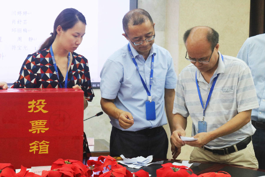 三是通過不記名投票的等額選舉方式選出了經費審查委員會委員及女職工委員會委員各三名。