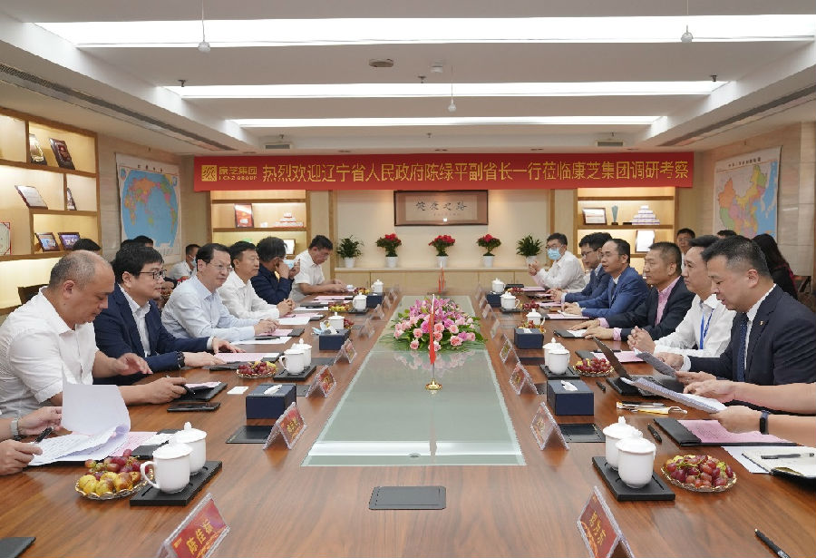 10月11日下午,遼寧省副省長陳綠平一行來到康芝集團進行調研考察,康芝集團董事長洪江游、康芝集團董事兼康芝藥業總裁洪江濤率高管團隊熱情接待。遼寧省商務廳廳長宋彥麟、商務廳副廳長潘爽、發改委副主任黃洋、財政廳副廳長鄒大鵬、自然資源廳副廳長王宗林、工業和信息化廳二級巡視員郝慶順、沈陽市政府副秘書長陳佳標、沈陽市鐵西區區長兼沈陽經濟技術開發區(中德園)管委會主任郭忠孝等政府部門領導陪同參加了調研活動,康芝藥業副總裁兼董秘林德新、董事長助理王勇等企業高管一同參與了本次接待。