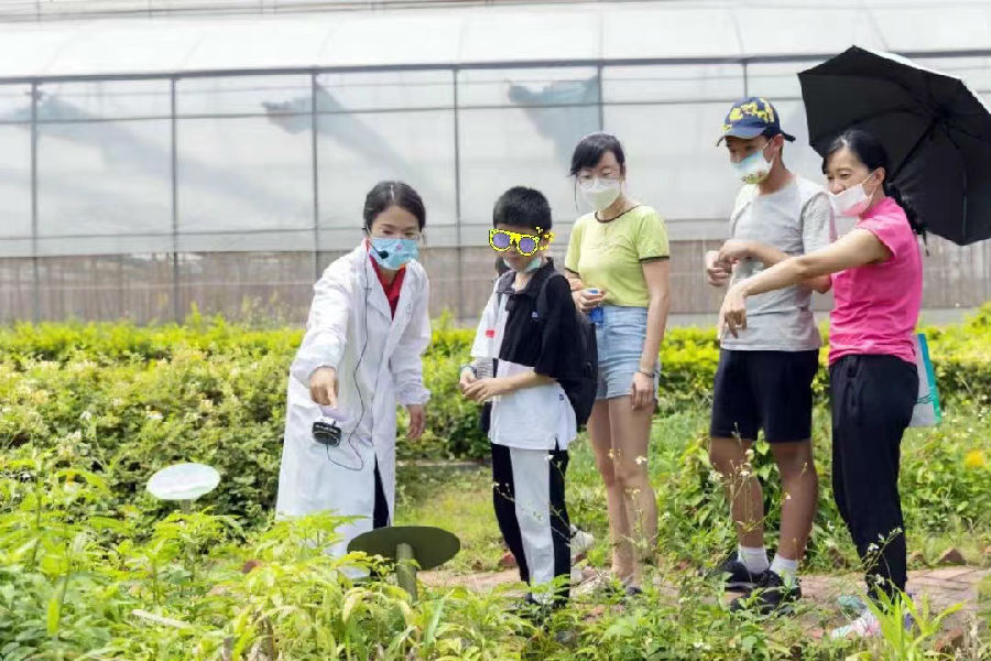 除了與同伴之間的相處,實物認知也是星星孩子生活學(xué)習(xí)中的重要部分。在進行完團建活動后,由由康芝紅臉蛋基金志愿團隊中的全國執(zhí)業(yè)中藥師作為百藥園的健康講師帶領(lǐng)星星孩子參觀了百草園、動物園、果蔬園,其中各式各樣的草藥在日常生活中大家很少接觸到,引起了星星孩子們的興趣。