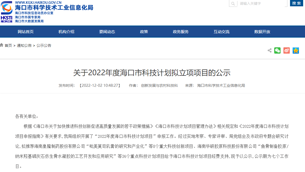 康芝藥業作為國內知名的兒童大健康上市企業,堅持以創新為原動力,高度重視藥品劑型的研發及產業化投入。多年來始終致力于解決減低藥物劑量、提升安全性等兒童制劑創新難題,研發、生產優質的兒童藥物新制劑,以實際行動積極踐行“兒童大健康戰略”和“精品戰略”。本次成功入選“2022年度海口市科技計劃項目”,充分體現了康芝藥業在藥物研究領域已具有較強的研究基礎與學術影響力。