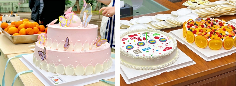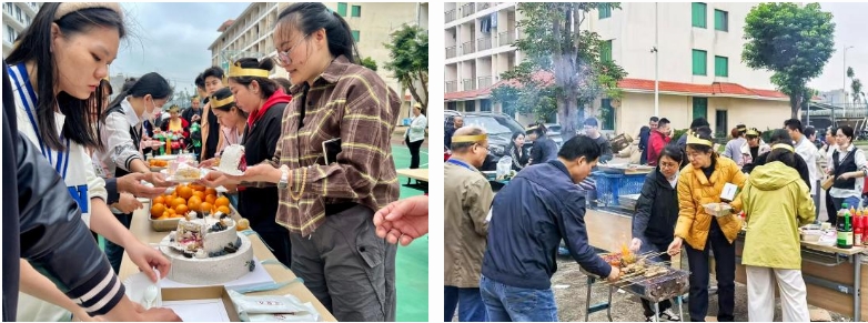 趣味游戲結束后,工會還精心準備了豐盛的小吃、新鮮的水果、色香味俱全的自助燒烤和精致的生日蛋糕,現場搖身變為美食的天堂。活動現場歡笑聲交織回蕩,員工們全情投入,盡情享受這一充滿歡樂與溫情的美好時刻。
